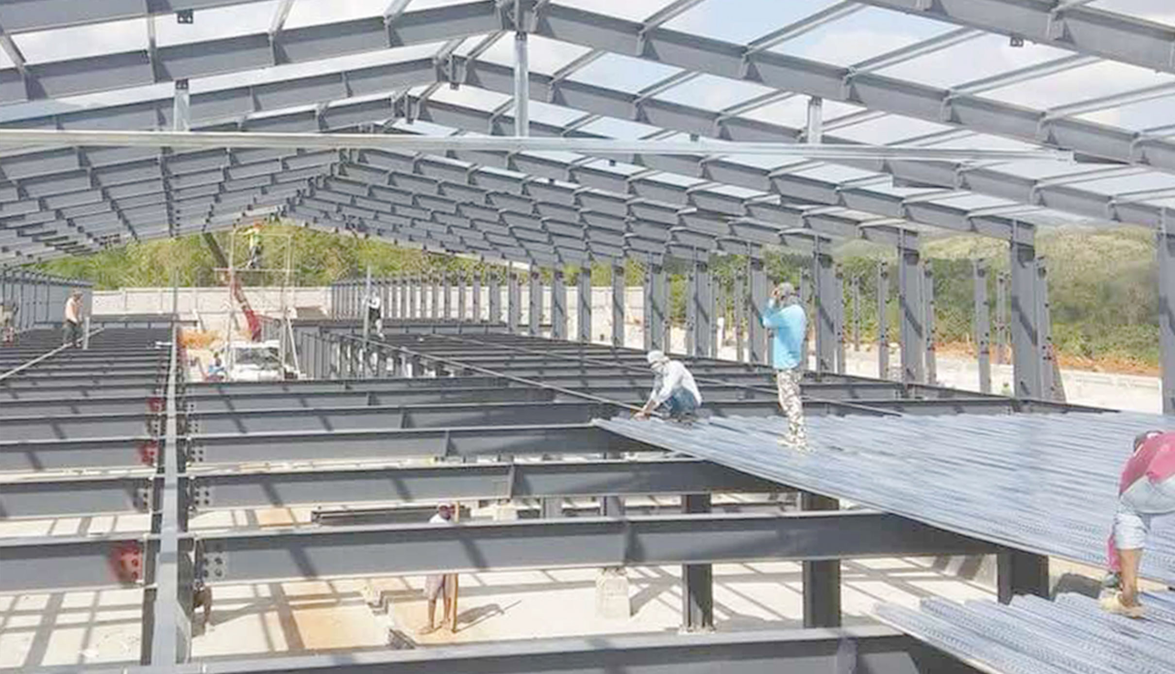 - The ceiling:corrugated steel sheet + insulation materials or sandwich panel.