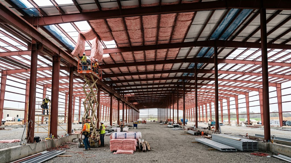 Without adequate insulation warm interior air hits cold metal panels turning into water droplets. This moisture causes inventory damage while promoting premature rust on structural members.