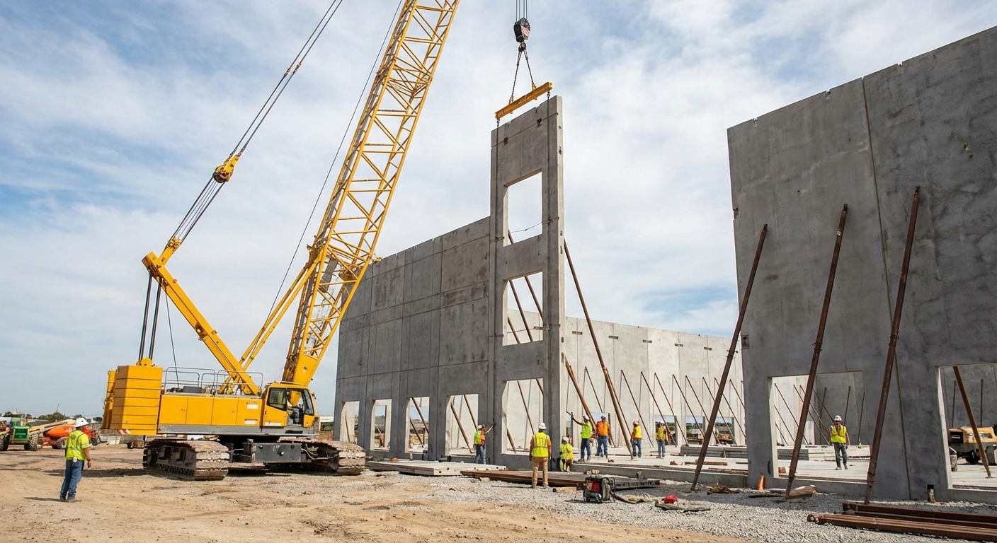 The use of large-capacity cranes and casting beds requires a significant initial setup, but the speed of wall installation is unmatched once the panels are cured.