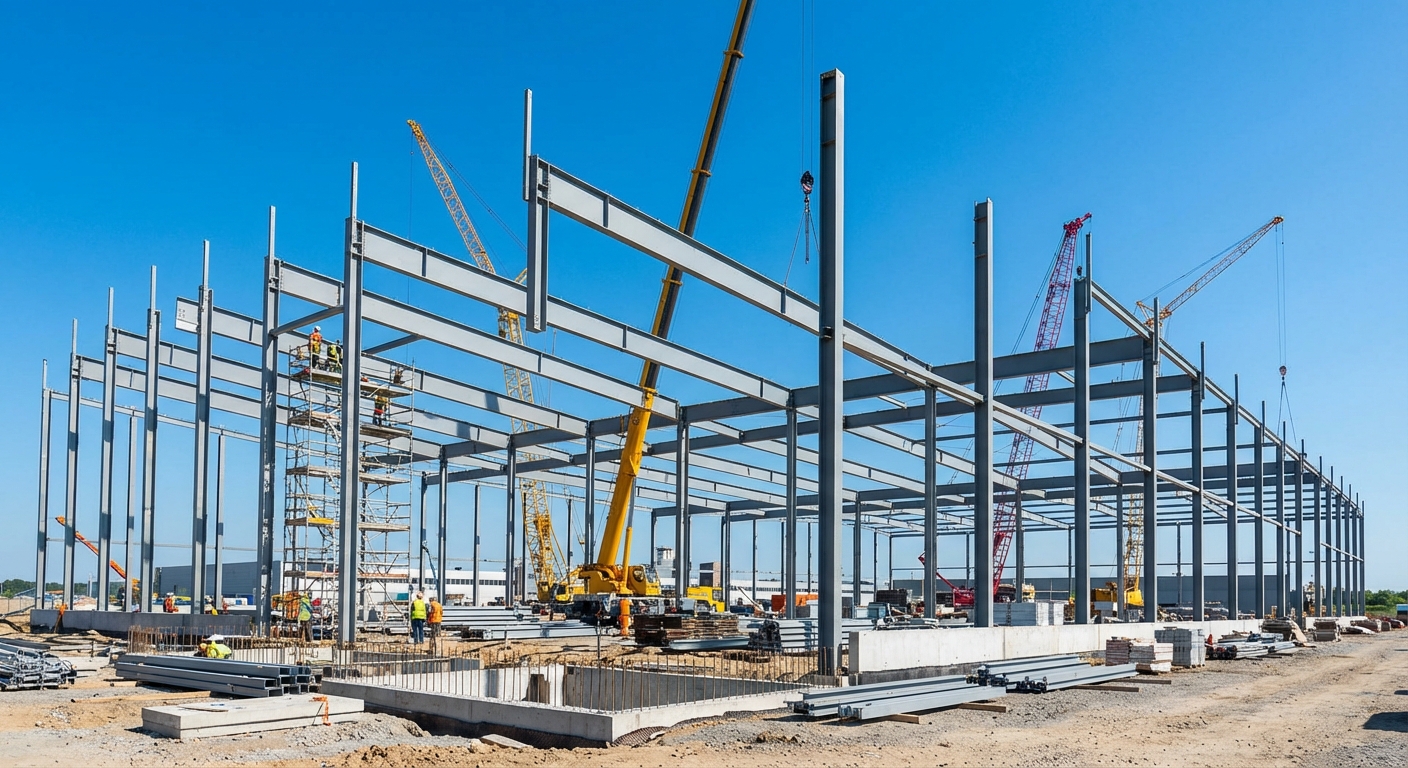 Steel remains the industry standard because it allows for wide clear spans and flexible interior configurations. Pre-engineered systems reduce on-site labor costs and significantly shorten the construction timeline.