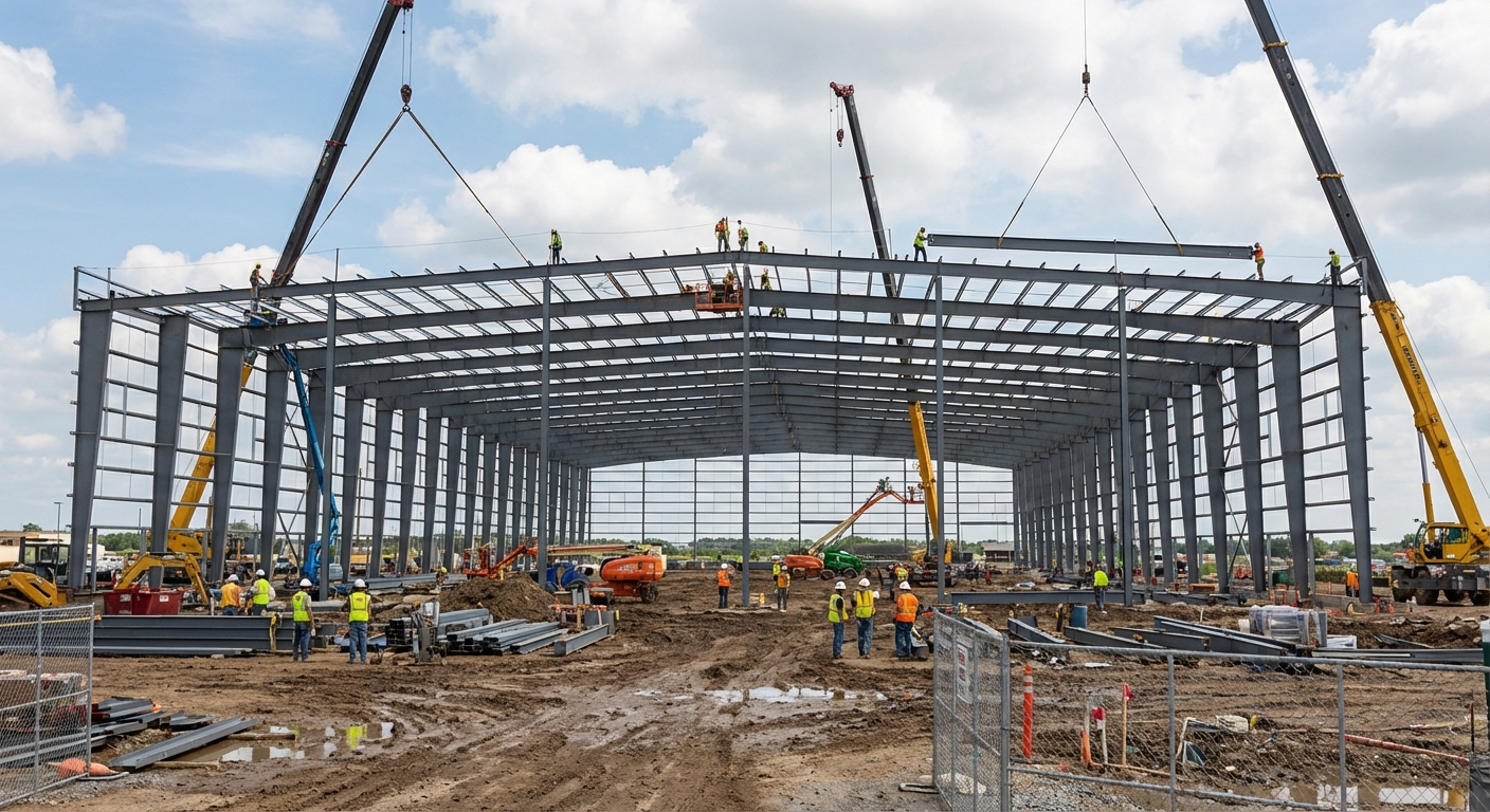 Successful steel warehouse construction begins with a verified foundation and a synchronized delivery of prefabricated components. This process is significantly faster than traditional builds because the assembly is more like a mechanical installation than a raw construction project.