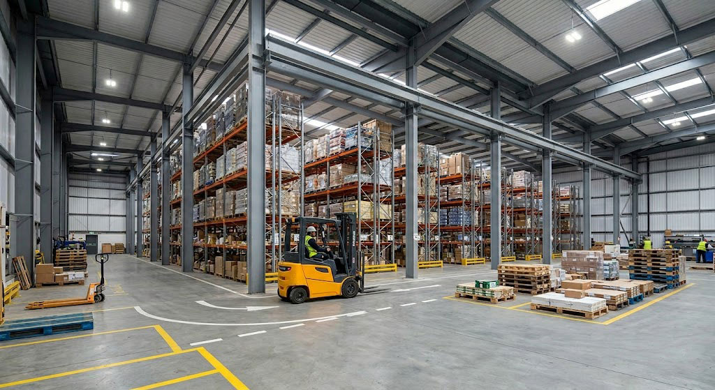 Effective floor plans prioritize smooth traffic flow, clear staging areas, and tall vertical storage racks. Optimizing a 3000 sq ft warehouse means treating vertical volume just like floor space. You must map out forklift turning radiuses before bolting down any shelving units. A poorly planned interior creates daily operational bottlenecks.