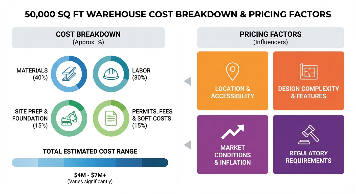 A 50,000 square foot warehouse is defined as a large-scale industrial facility designed for high-capacity storage or manufacturing. You must consider the total footprint, clear span requirements, and the specific zoning laws of your location. These projects typically utilize heavy-duty steel frames to maximize internal volume.