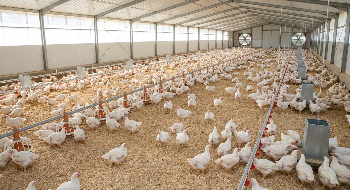The integration of automated feeders in chicken houses commercial operations is the backbone of rapid broiler growth cycles.