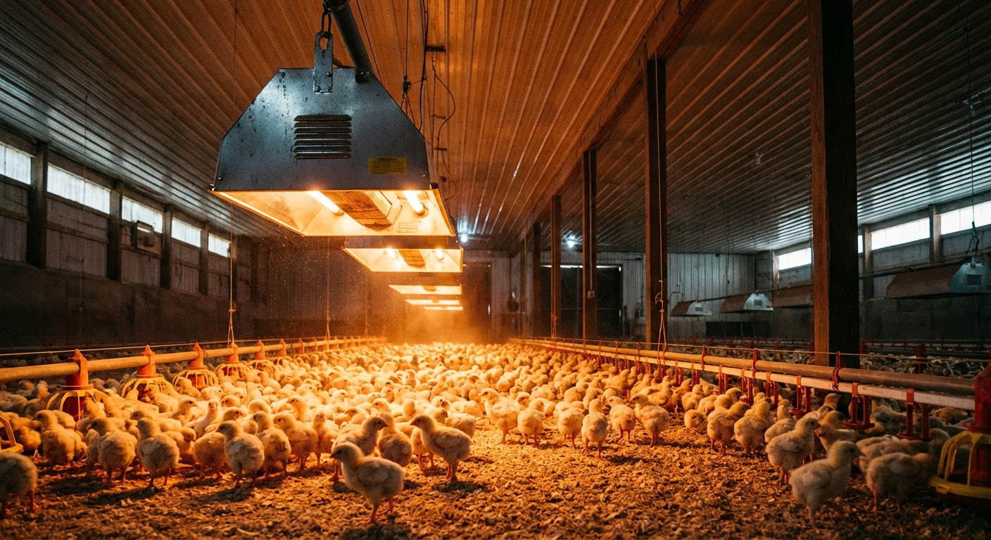 The result? Key Takeaway: Radiant heaters provide the most efficient brooding environment by heating the birds directly rather than the entire air volume.