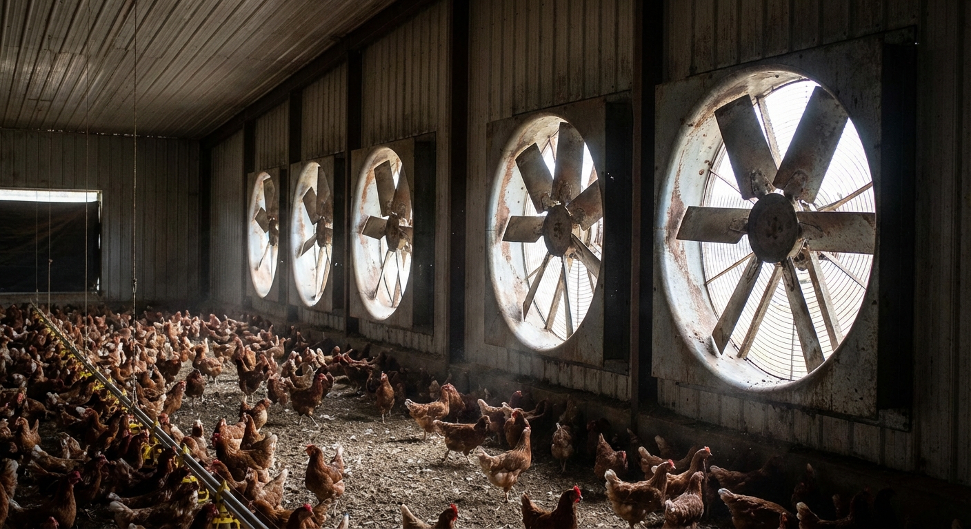 Ventilation is the primary method for controlling the internal environment of a commercial chicken house. Utilizing a steel workshop style of extraction, power ventilation systems pull air through the building to remove moisture and ammonia. This negative pressure system ensures that fresh oxygen is distributed evenly to support the birds’ metabolic needs.
