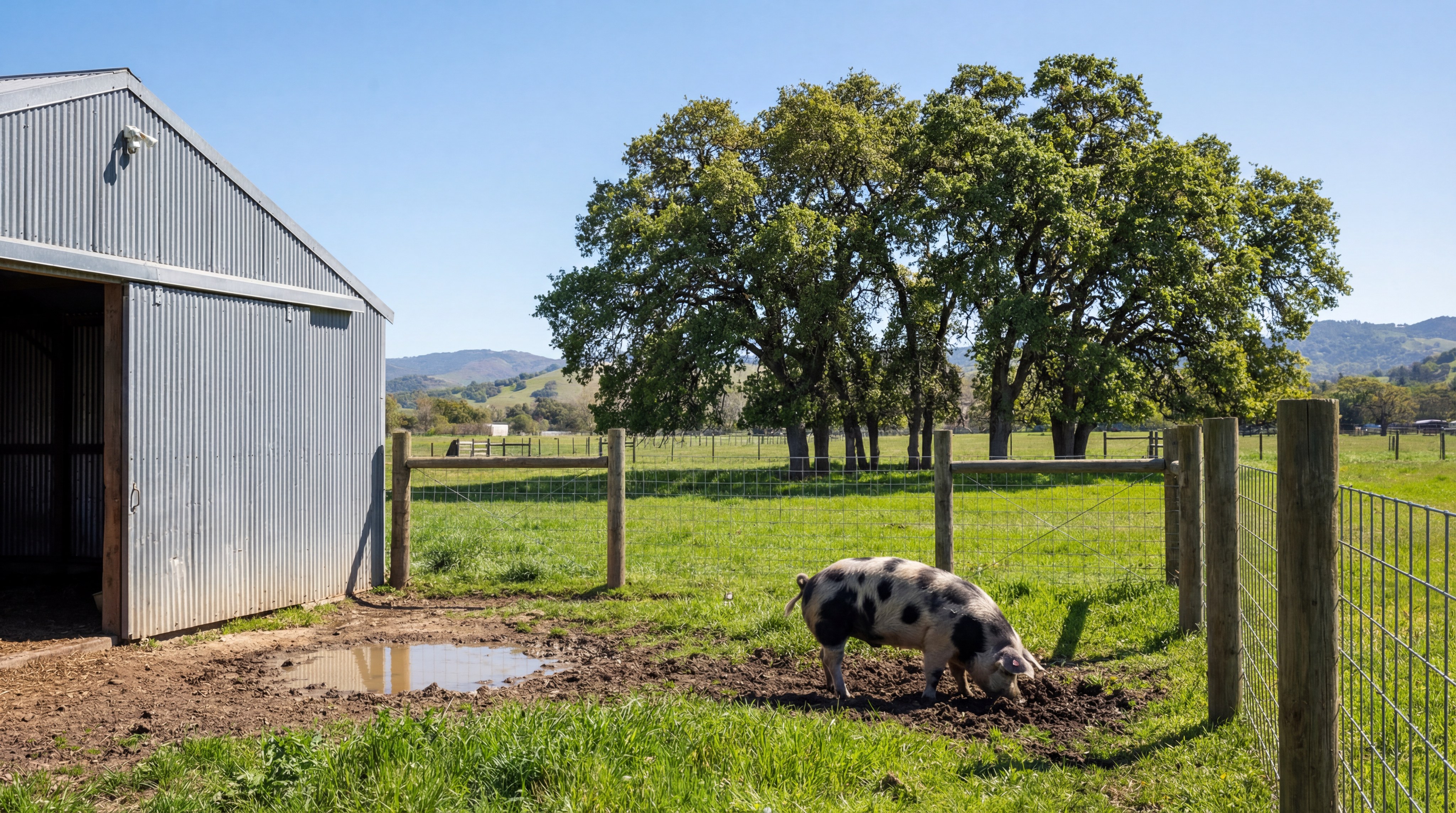 Fencing near your pig shed must be incredibly robust, using 2×4 woven wire mesh combined with pressure-treated wooden posts. Pigs are surprisingly strong and can easily destroy lightweight fencing if they decide to root underneath it. Secure perimeter control is your first line of defense against predators and escapes.