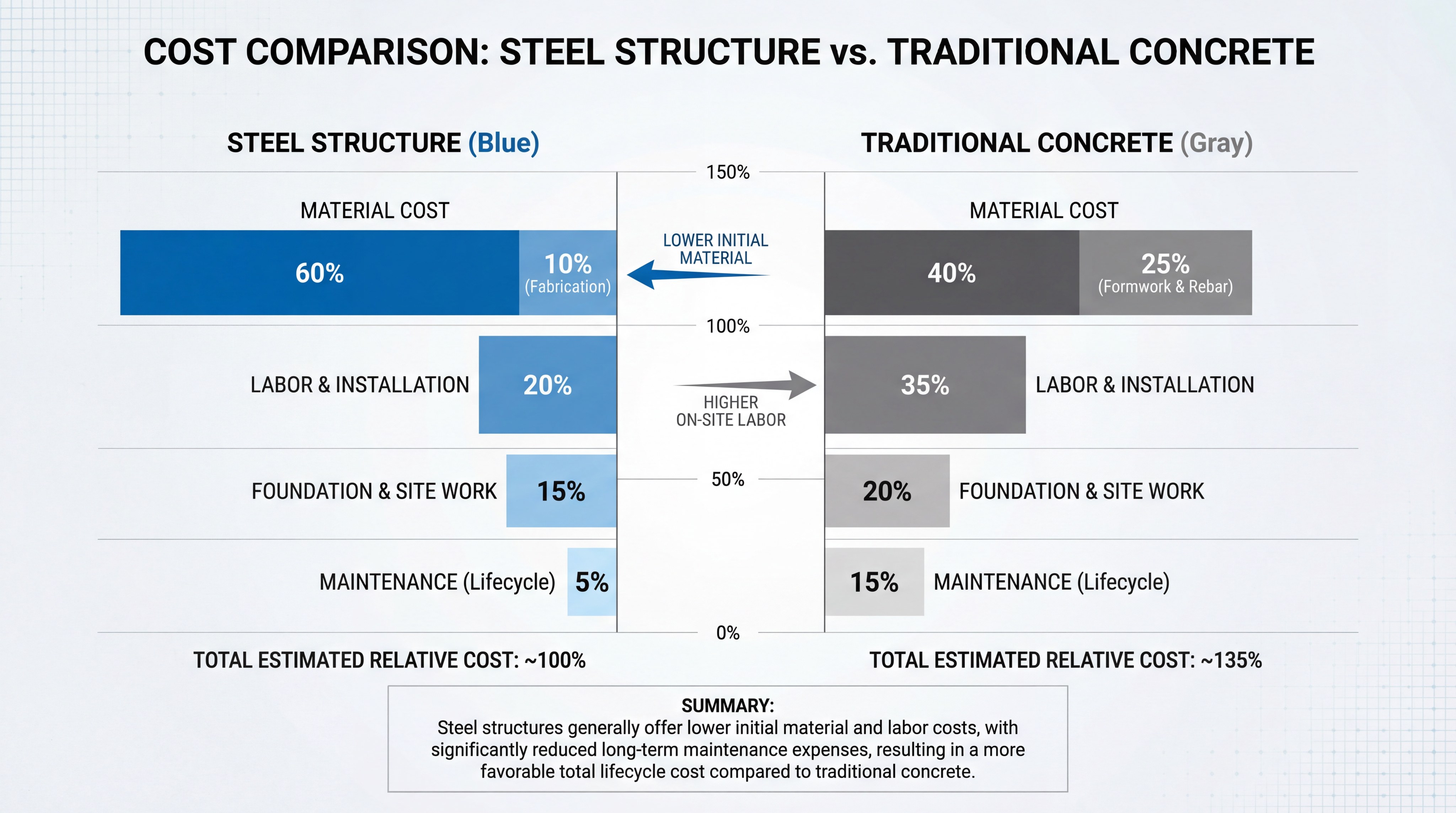 Key TakeawayWhile initial material prices may vary, the total lifecycle cost of steel is unmatched due to lower labor and maintenance requirements.
