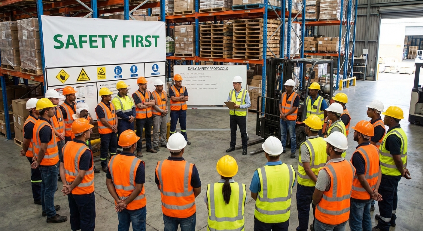 Daily safety briefings are designed to keep hazards top-of-mind and address any new risks discovered during the previous shift. You should actively participate in these meetings to stay updated on equipment changes or pedestrian path updates.