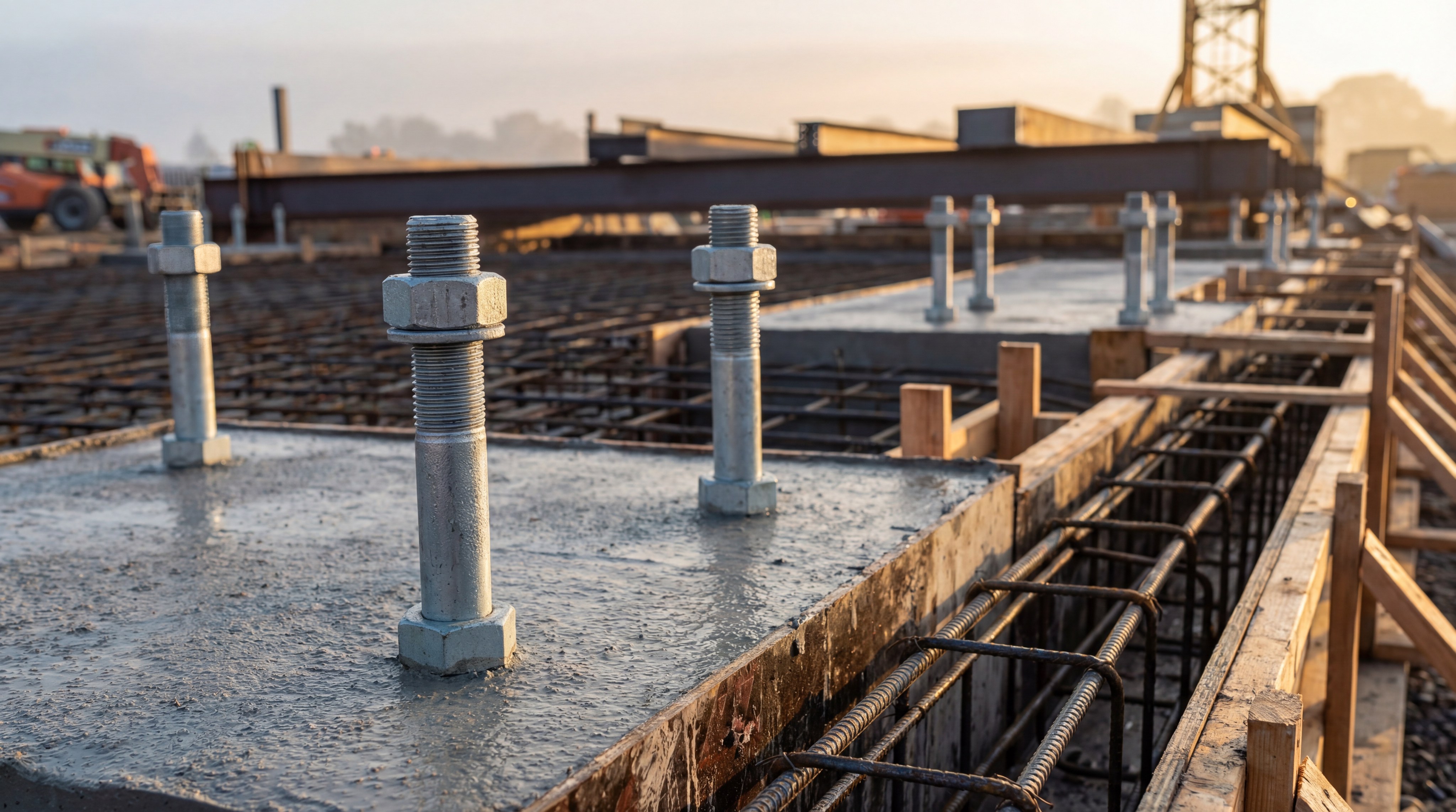 - Anchor Bolts: Heavy-duty fasteners that secure the steel to the concrete.