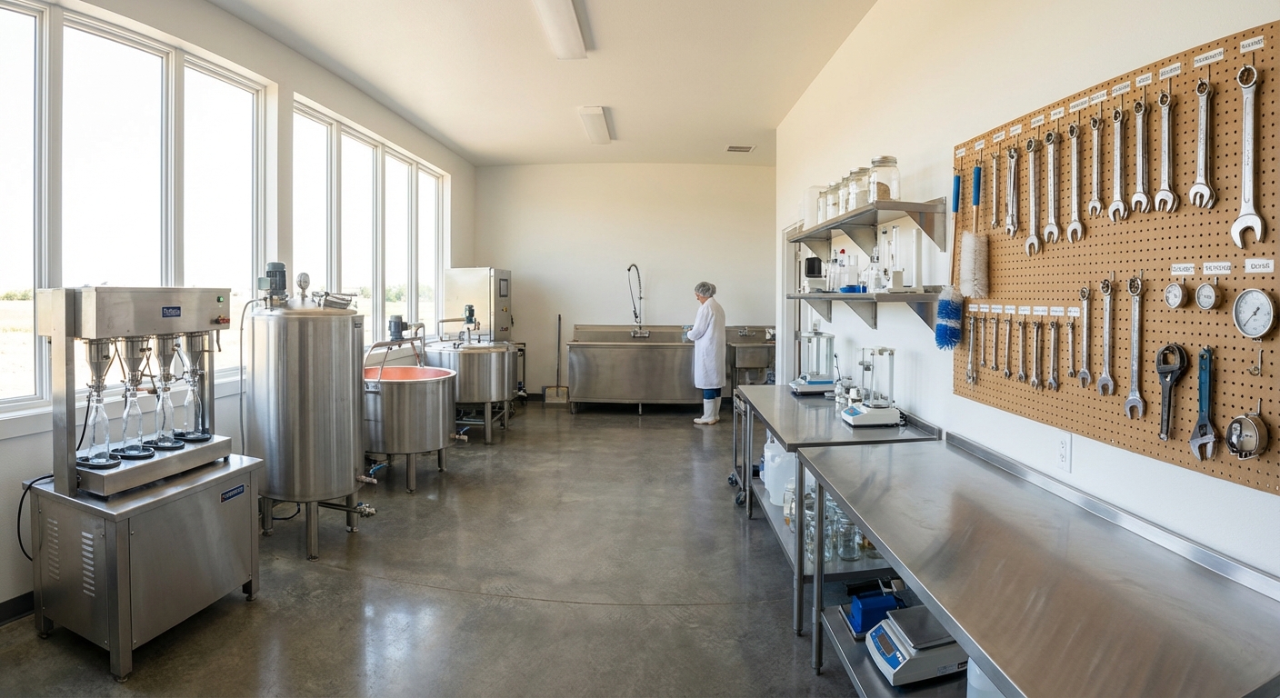 Key Takeaway: Home dairy production involves significant secondary tasks that are best managed in a dedicated, organized workshop space.
