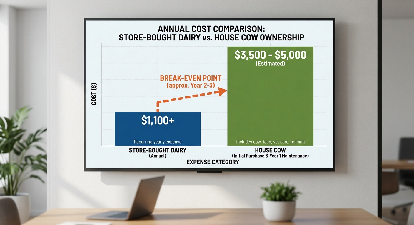 For most families, the annual cost of basic dairy products like milk, butter, and cheese now exceeds $1,100. Owning a house cow can significantly reduce this recurring expense, though it requires a higher upfront investment in the animal and infrastructure.