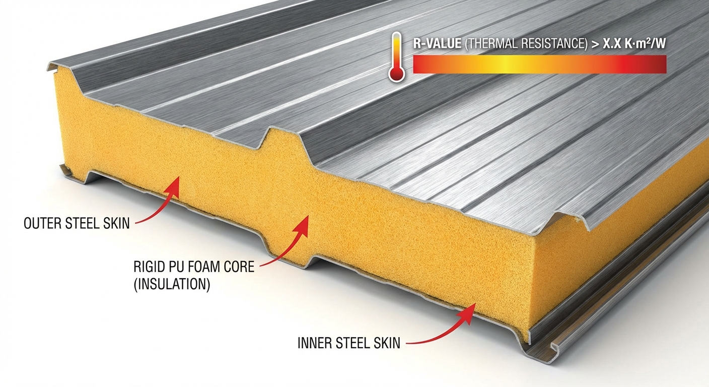 While fiberglass is economical for standard builds, high-performance polyurethane (PU) or PIR sandwich panels are the industry standard for cold storage. These panels offer superior R-values, which is the measure of thermal resistance per inch of thickness.