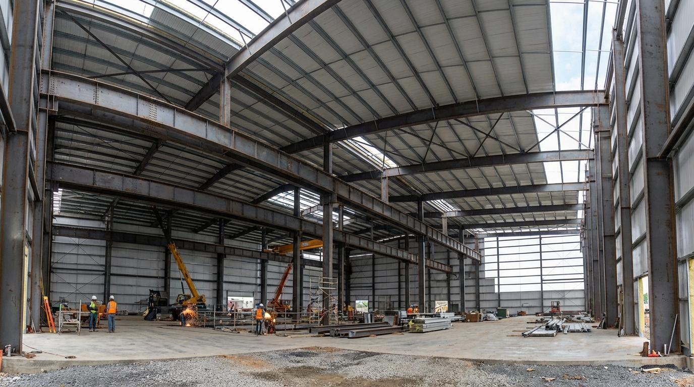 Modern warehouses require spans of up to 40m without internal columns to allow for forklift maneuverability. Steel is the only material that can cost-effectively achieve these open-floor layouts.