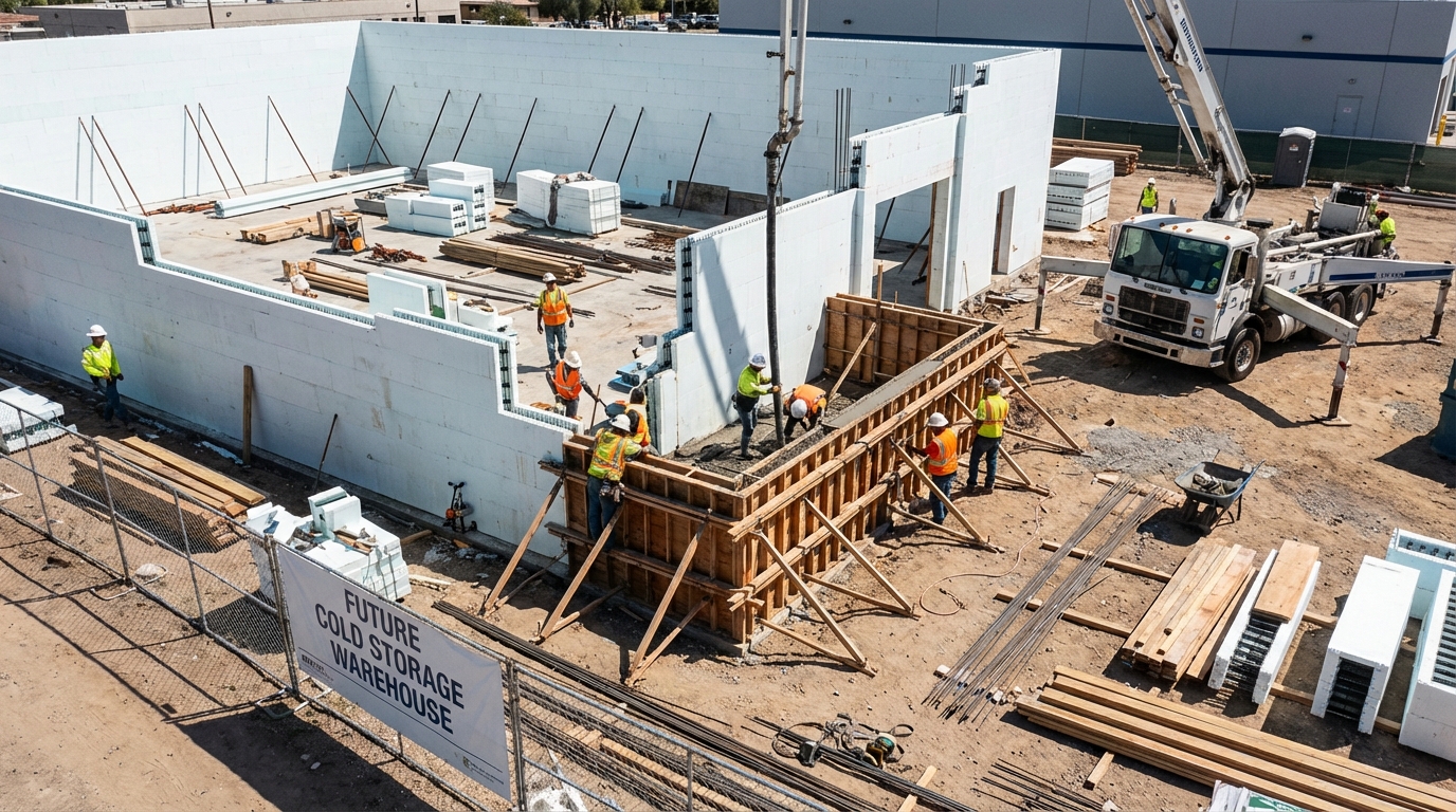 ICF is widely considered the best choice for cold storage warehouse construction because it offers a higher degree of temperature “inertia” than thin-metal panels. You get a building that stays cold longer and responds more slowly to external temperature spikes.