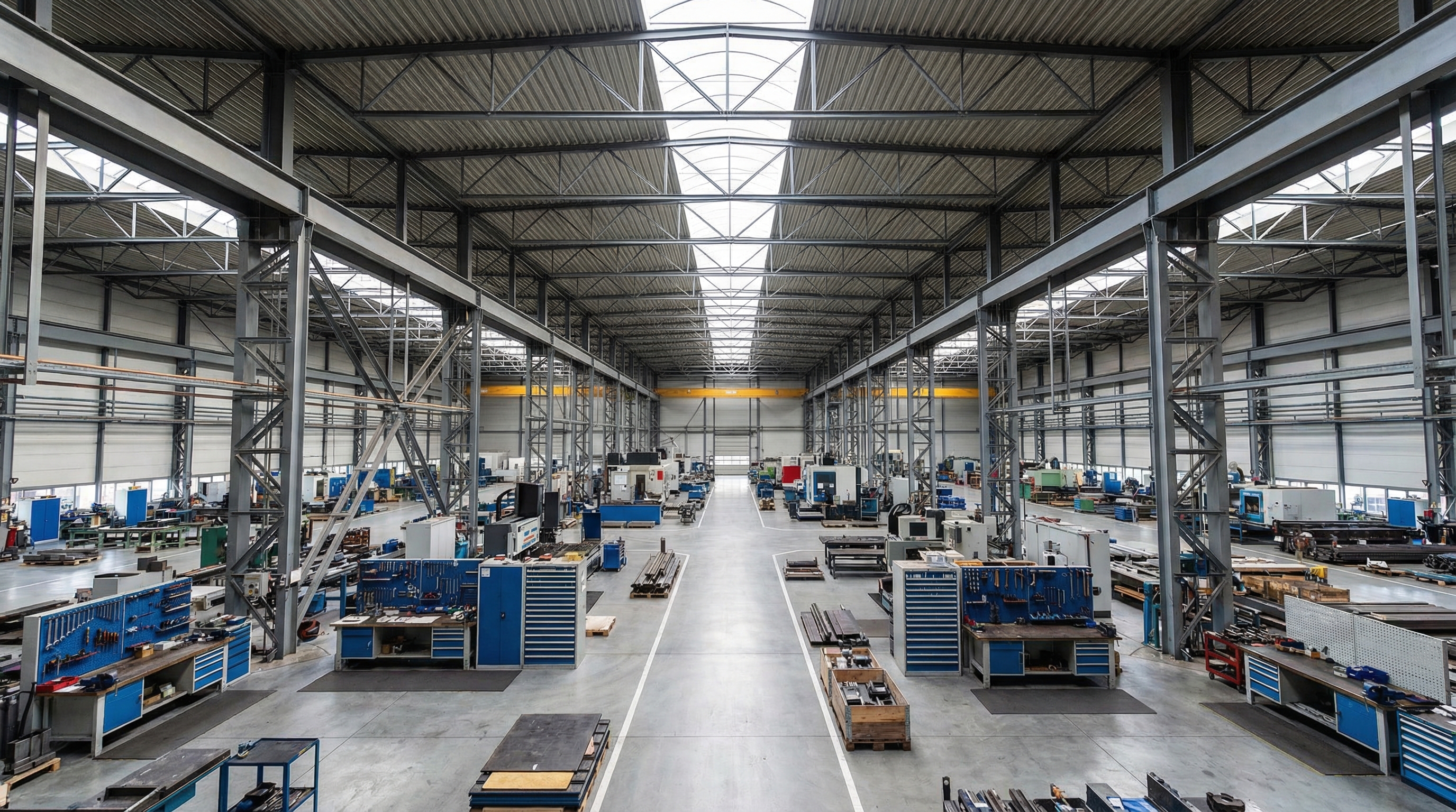| Open Layout | Long-span portal frames | Zero obstructions for heavy machinery | |