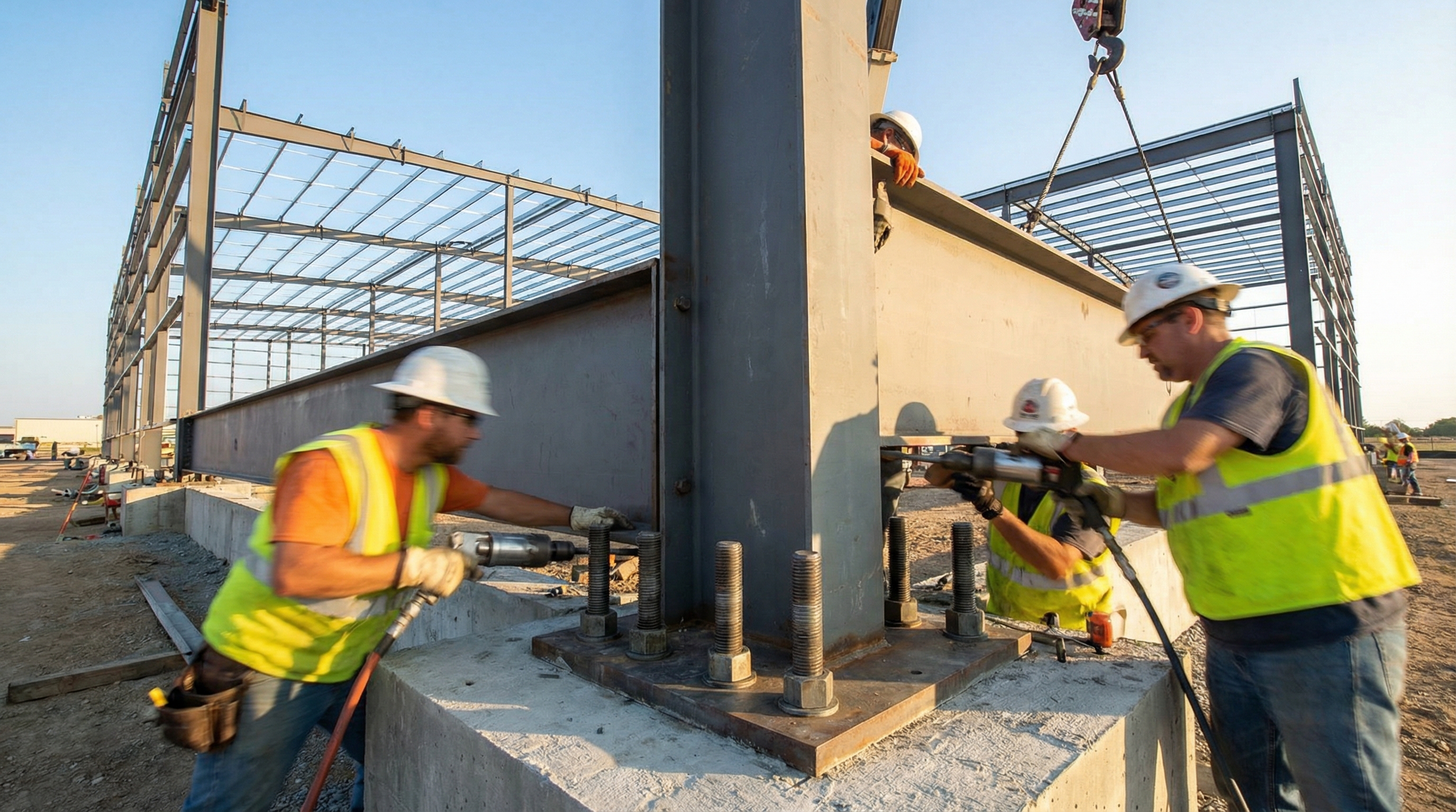 - Precision surveying for bolt layout.