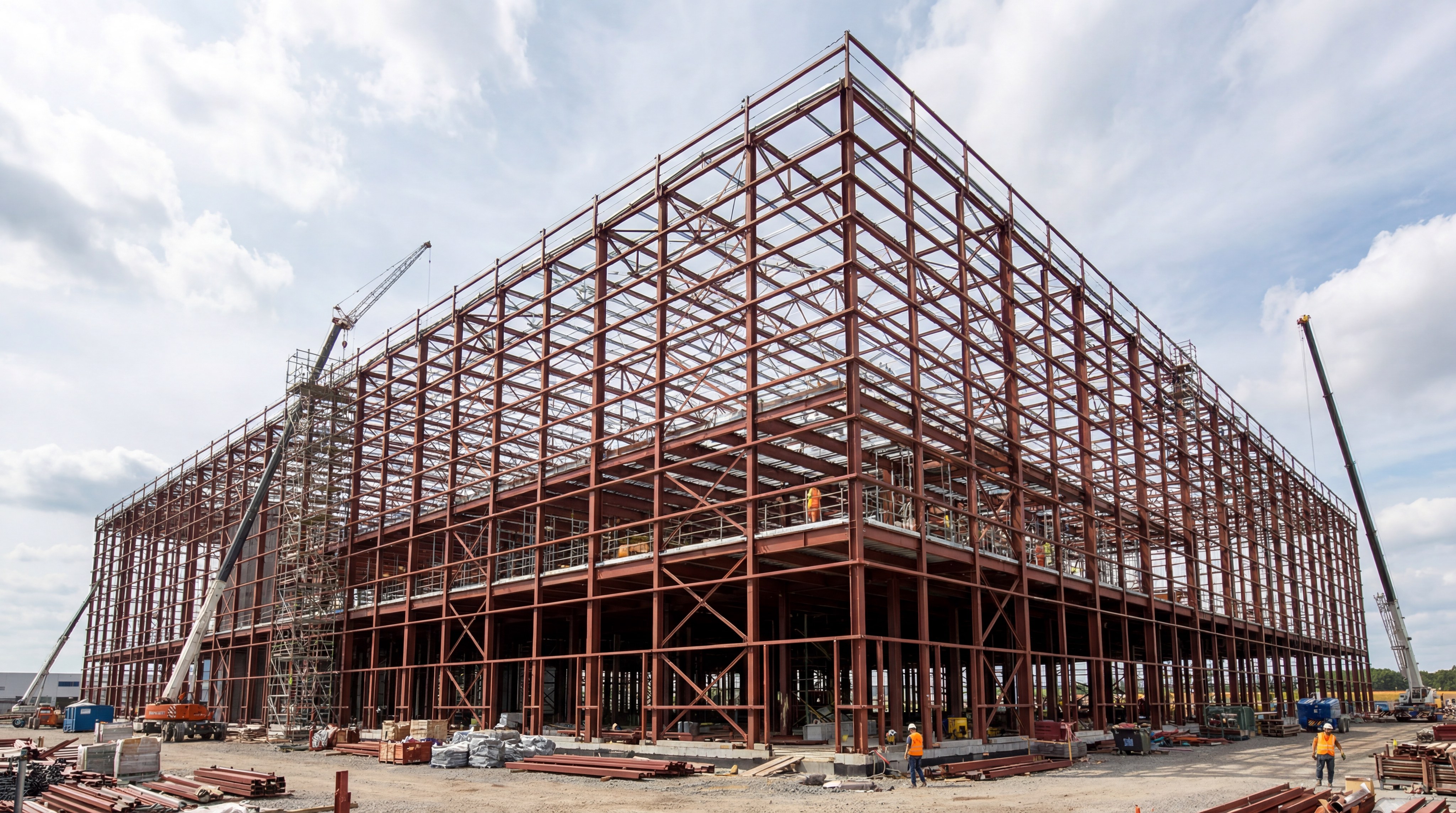 In large-span warehouses, steel beams allow for vast open floor plans without the need for frequent vertical supports. These structures often utilize tapered members to optimize material usage over long distances.