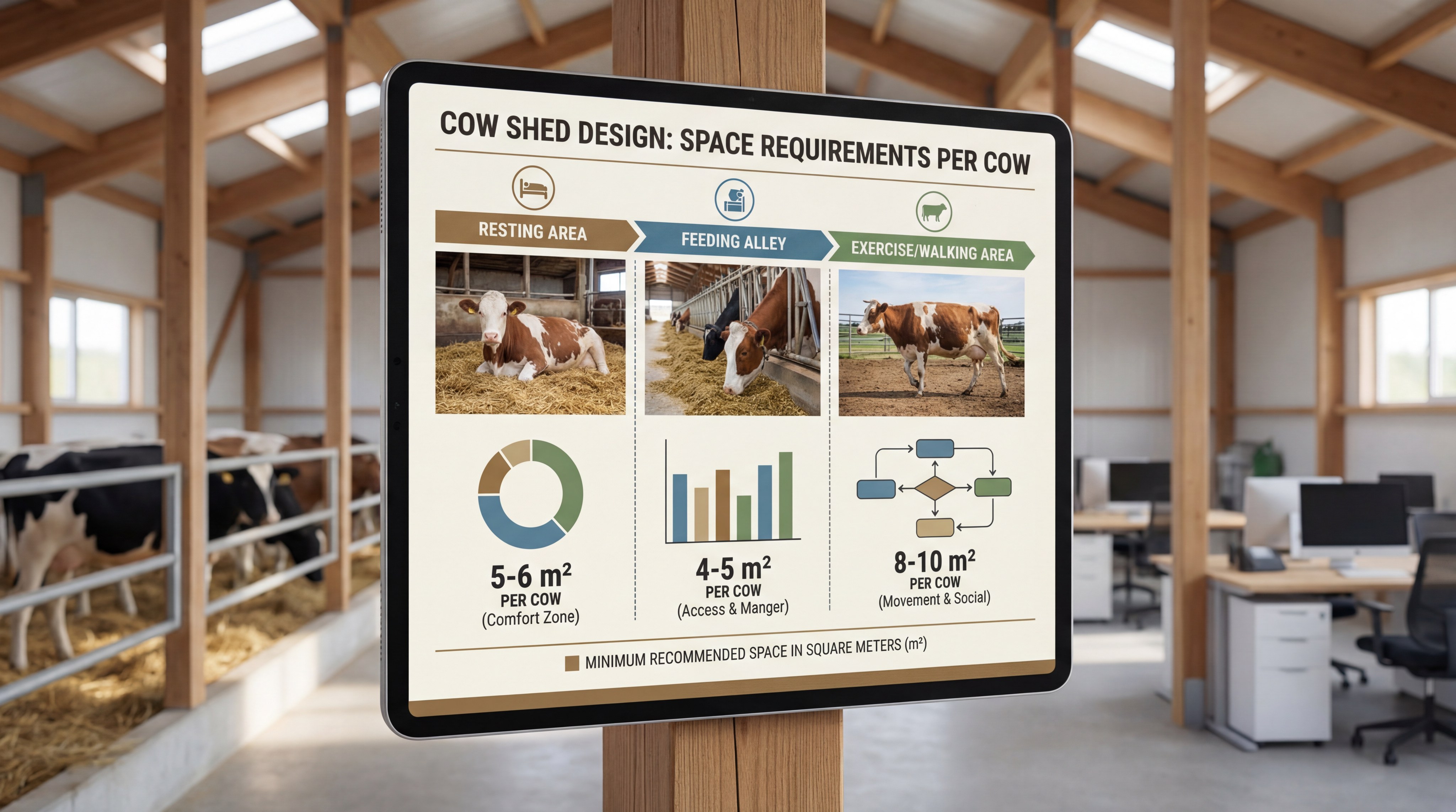 How do I know if my existing cow shed floor plan is too crowded?It depends on the behavior of your herd; if you see cows “waiting” for stalls or if there is excessive aggression at the feed bunk, your space per cow is likely too low. Modern standards suggest at least one stall per cow plus 10% extra to ensure all animals can rest at once.
