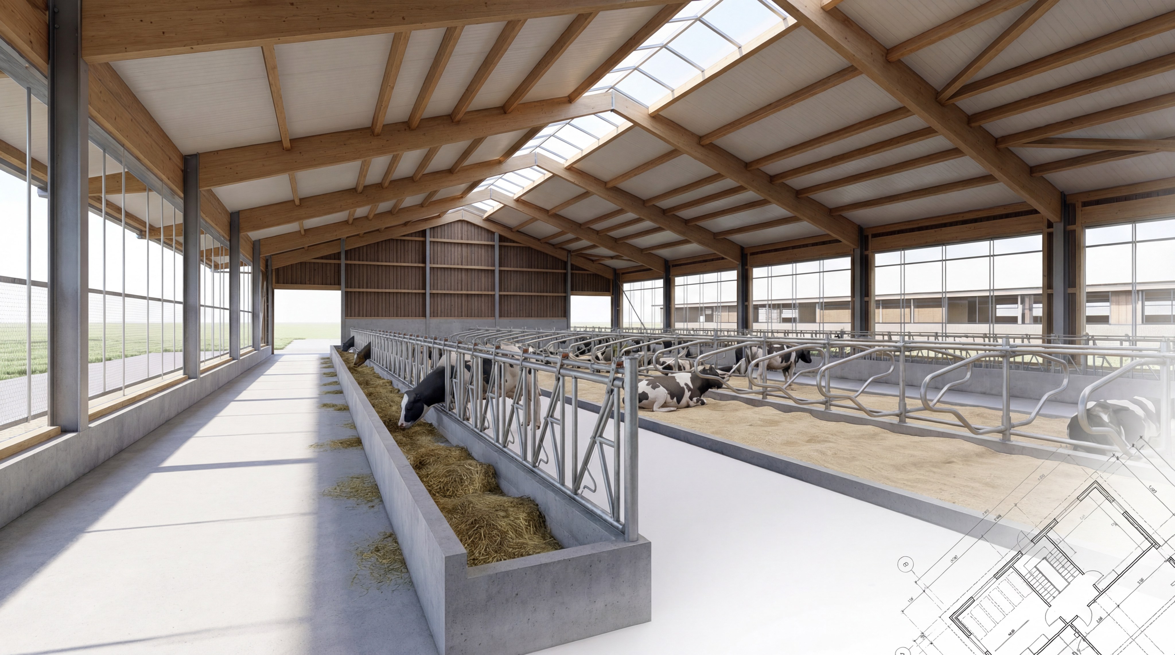 What’s the best way to reduce heat stress in an open cow shed design?It depends on combining natural orientation with high eaves and mechanical support. Orienting the building East-West and installing high-volume fans will move enough air to significantly lower the effective temperature for the cattle.
