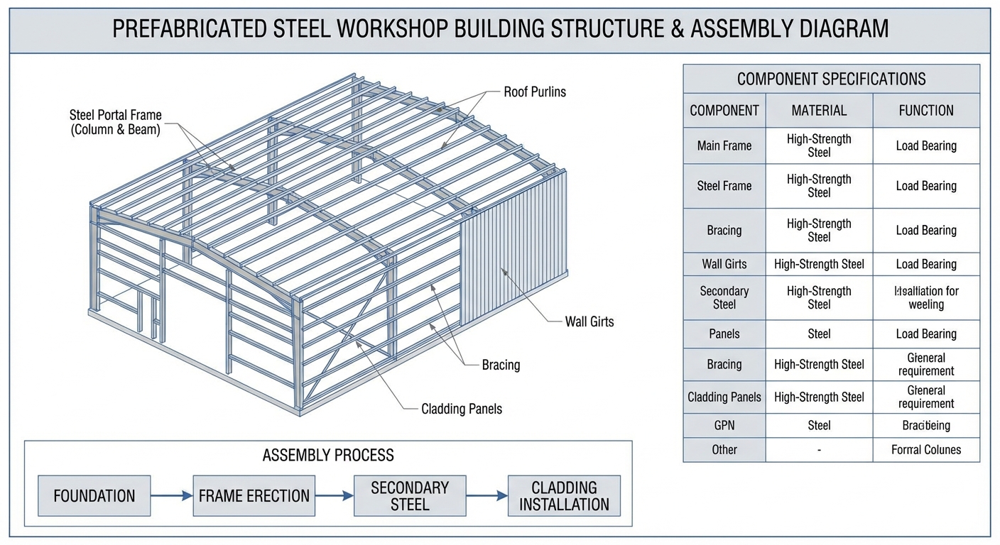 Pre-engineered steel components are erected significantly faster than traditional wood or masonry, often saving months of on-site construction time. Each piece of your steel workshop building arrives at the site pre-cut, pre-drilled, and ready for immediate bolt-together assembly.