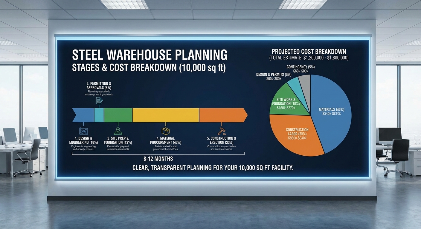 Planning a warehouse 10,000 sq ft building involves setting a realistic timeline for design, fabrication, and shipping while coordinating with local contractors for the site work. You should begin by defining your operational requirements, such as internal clearance heights and the number of loading docks needed.