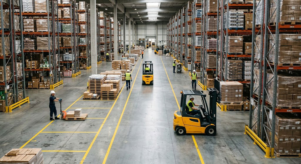 Forklifts require spacious aisles to turn, lift, and reverse securely. Your design must feature reinforced concrete floors to handle their massive weight. You must also include charging stations or refueling zones nearby. A well-planned layout minimizes workplace accidents and collisions.
