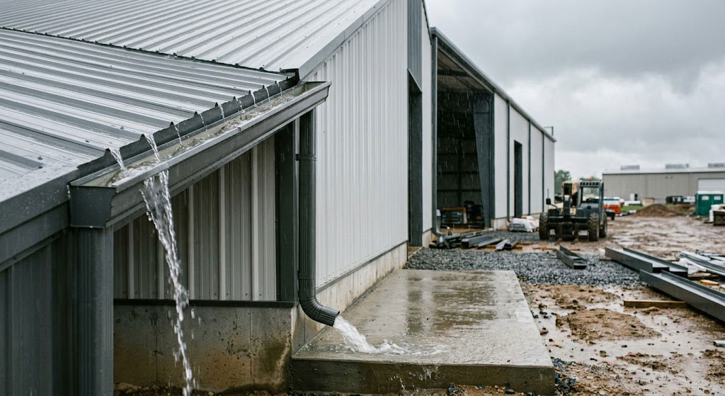Gutters protect your foundation by directing destructive rainwater away from the structure. When building a warehouse, managing exterior moisture is just as crucial as interior climate control. You must prevent water from pooling around your concrete slab. Effective drainage systems are your first line of defense against erosion.