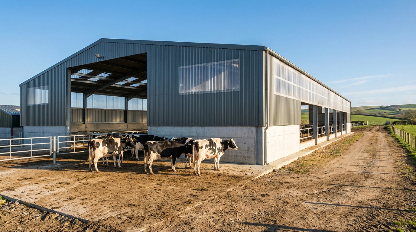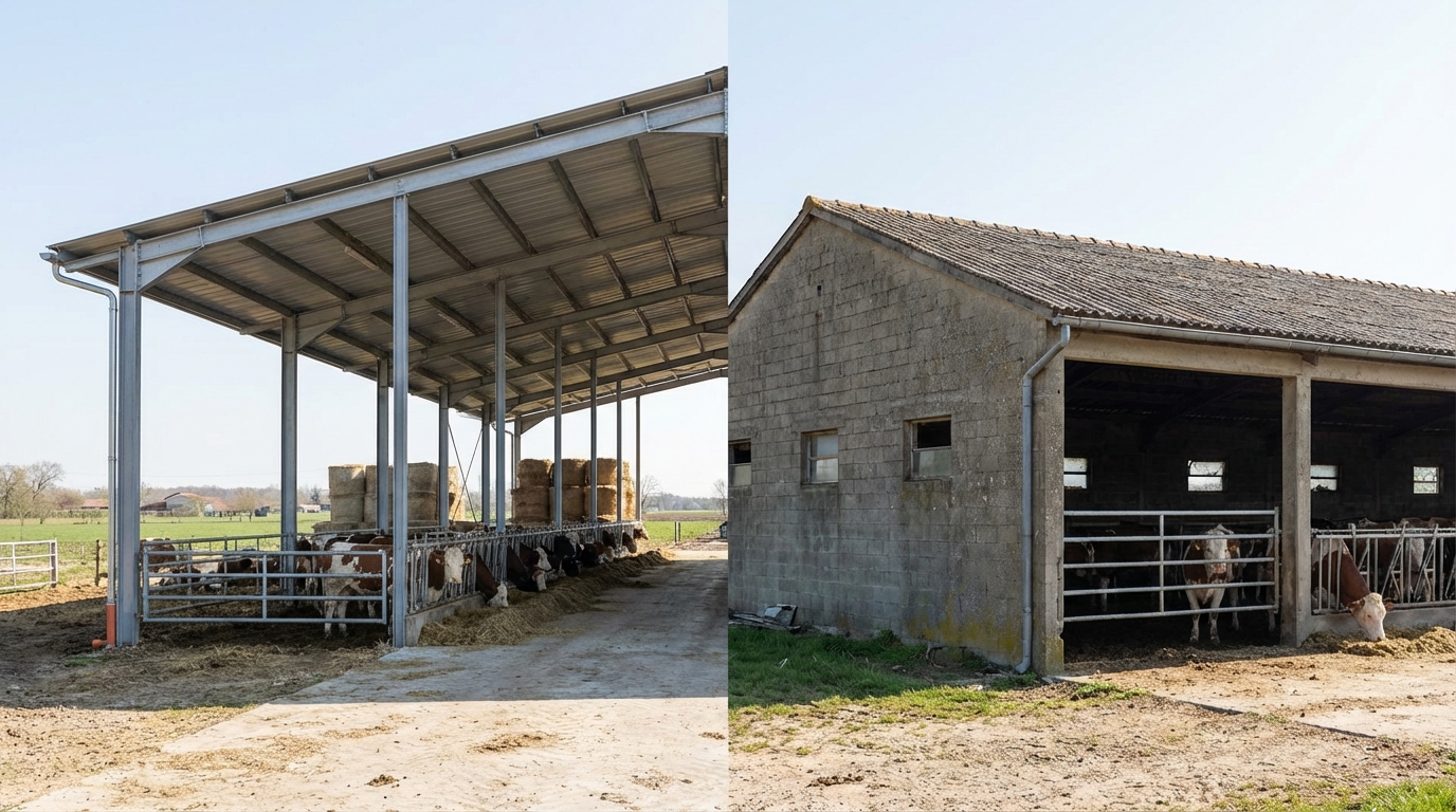 The steel vs concrete cow shed cost debate often centers on construction speed versus thermal mass. Steel buildings can be erected in a fraction of the time it takes to cast and cure large concrete sections.