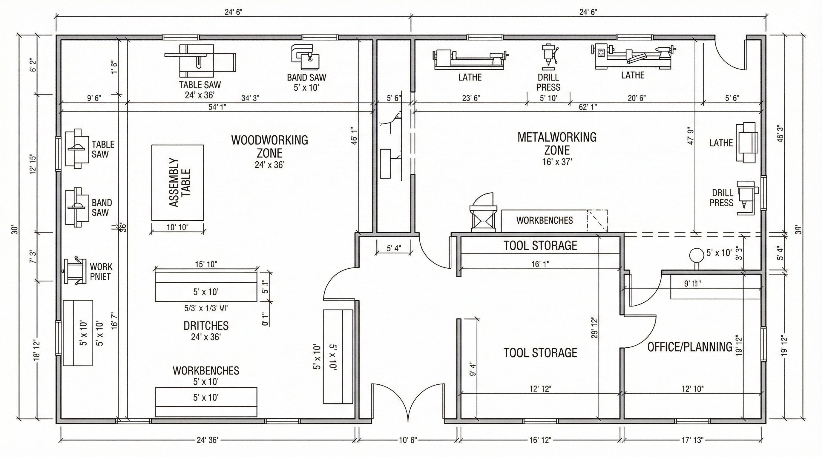 | Assembly Area | 4×8 ft minimum | Project glue-ups | |