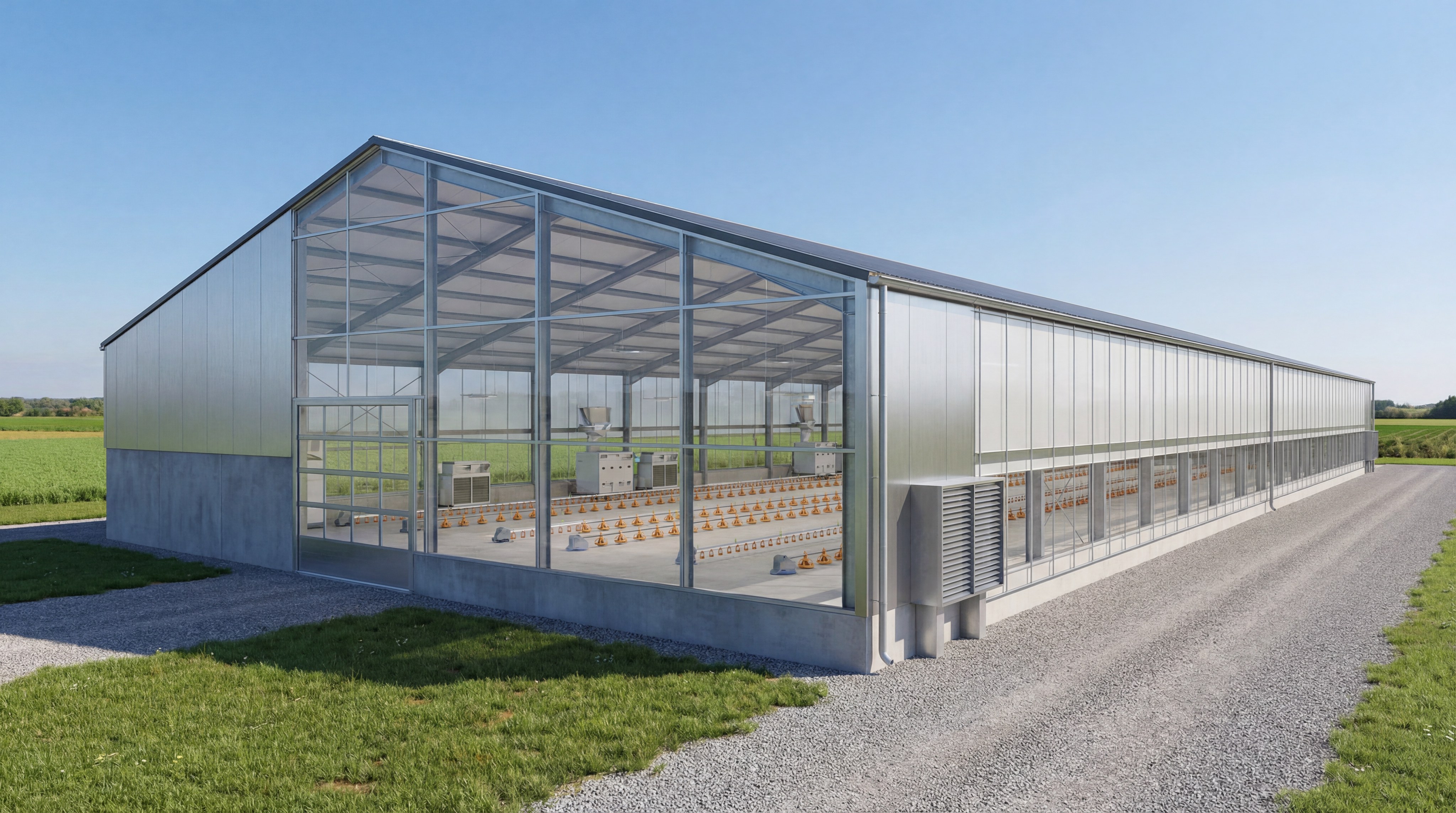 What is the benefit of a clear-span roof?A clear-span roof eliminates interior support columns, providing an unobstructed space for automated equipment and easier cleaning.