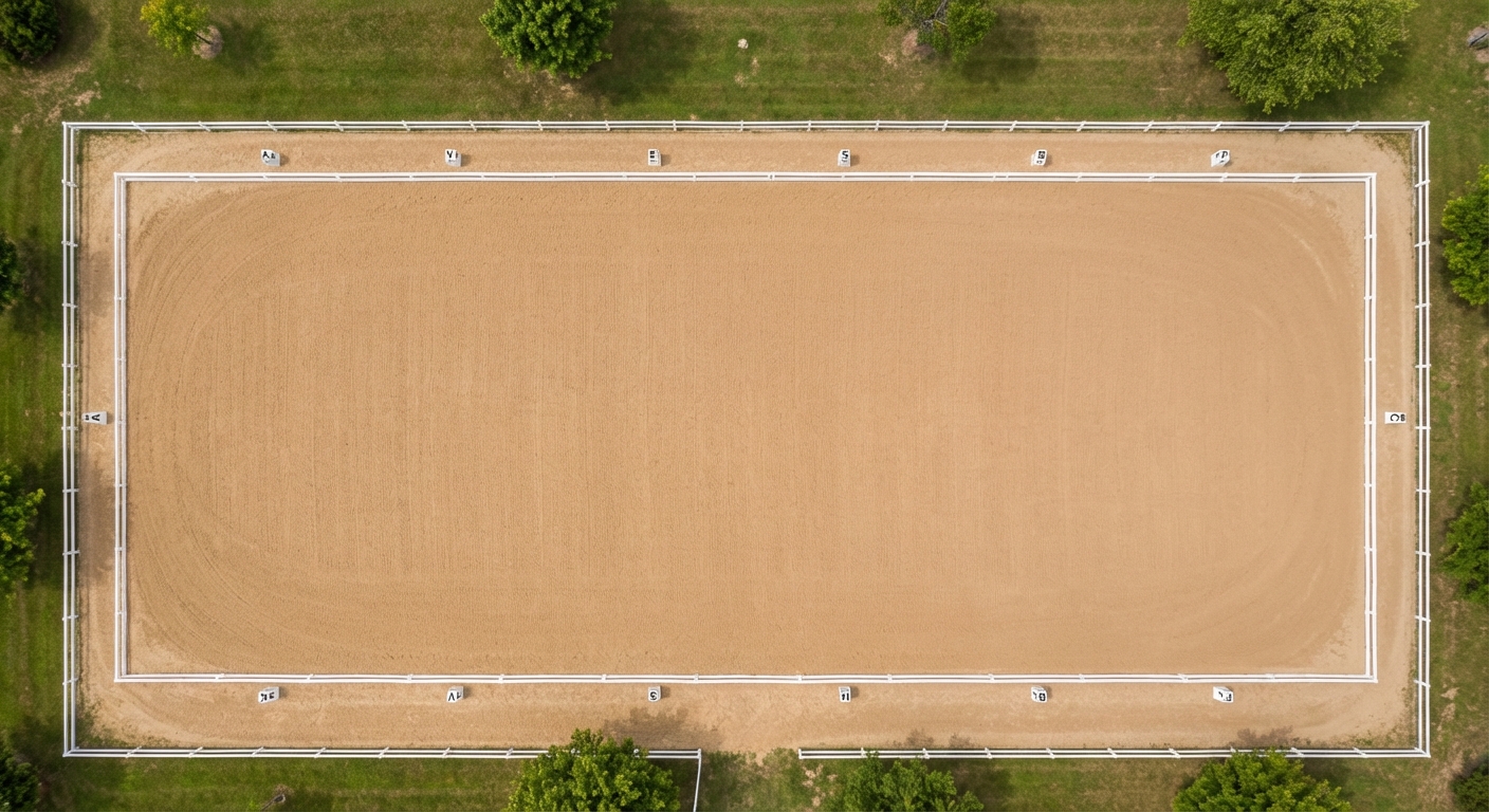 A standard dressage arena requires a 20m x 60m (approximately 66′ x 198′) footprint to accommodate full-scale competition tests. For smaller training spaces, a 20m x 40m layout is often used, but it does not allow for the completion of senior-level movements. You must also account for additional space beyond the rail for judges’ booths and spectator seating.