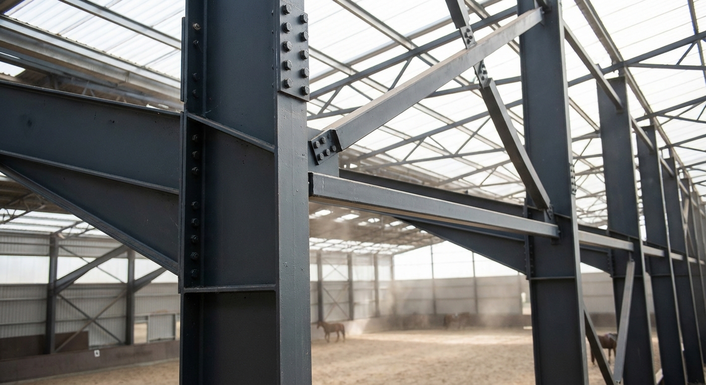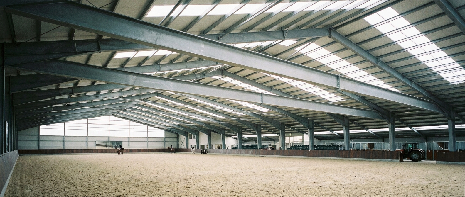 Steel structures provide the only viable way to build professional-grade arenas with massive, unobstructed riding surfaces.