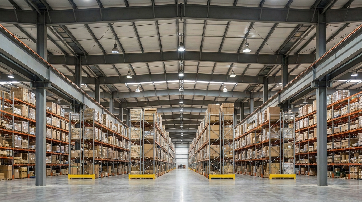 For logistics operations, interior columns are obstacles. Fabricated steel frames allow for wide-open floor plans, providing total flexibility for racking systems and forklift movement.