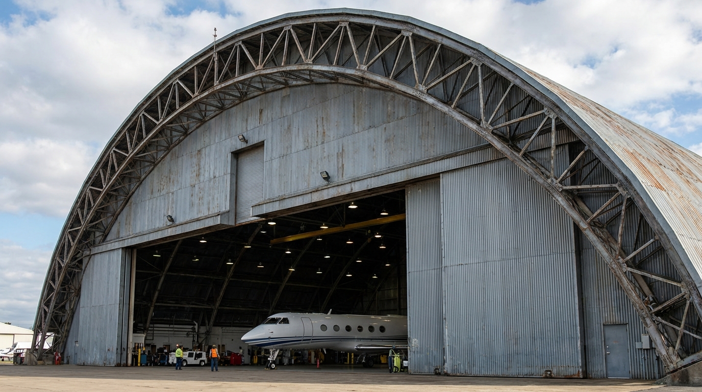 Aviation facilities require massive openings (up to 100m+) to accommodate wingspans. Fabricated steel is the only material that provides the strength-to-weight ratio necessary for these aircraft hangars .